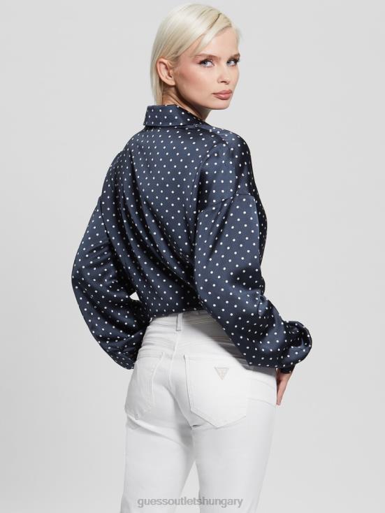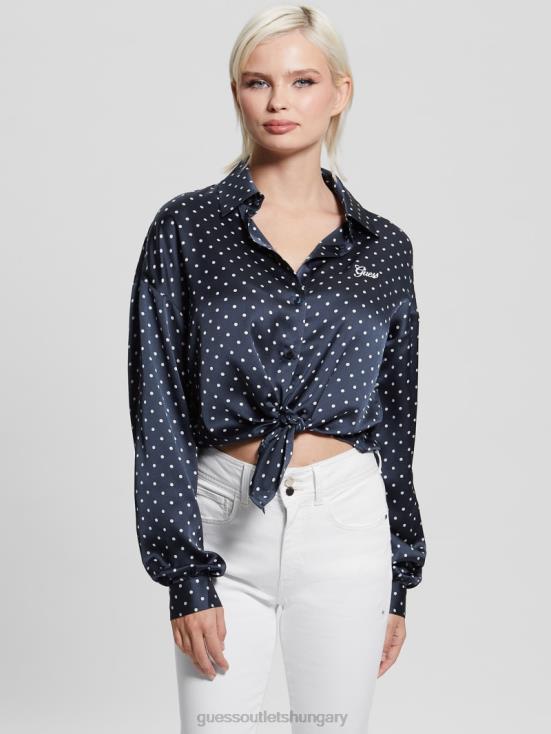 GUESS Blackened Blue Pois 8ZX4F1181 Eco Bow Jun Shirt