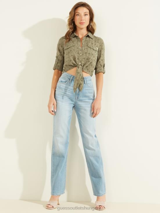 GUESS Flower Green 8ZX4F291 Eyelet Denim Shirt