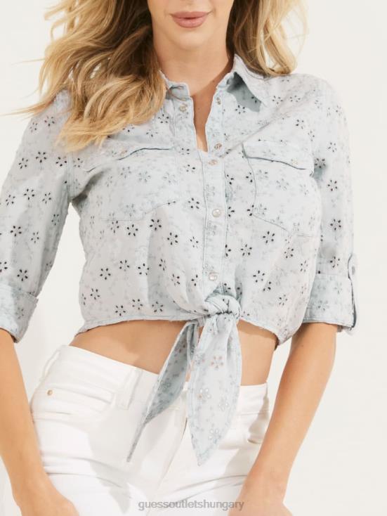 GUESS Flower Pale Blue 8ZX4F232 Eyelet Denim Shirt