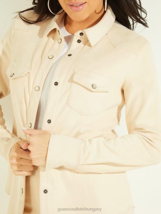 GUESS Pearl Oyster 8ZX4F1528 Daisy Faux-Suede Western Shirt