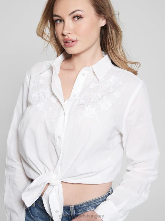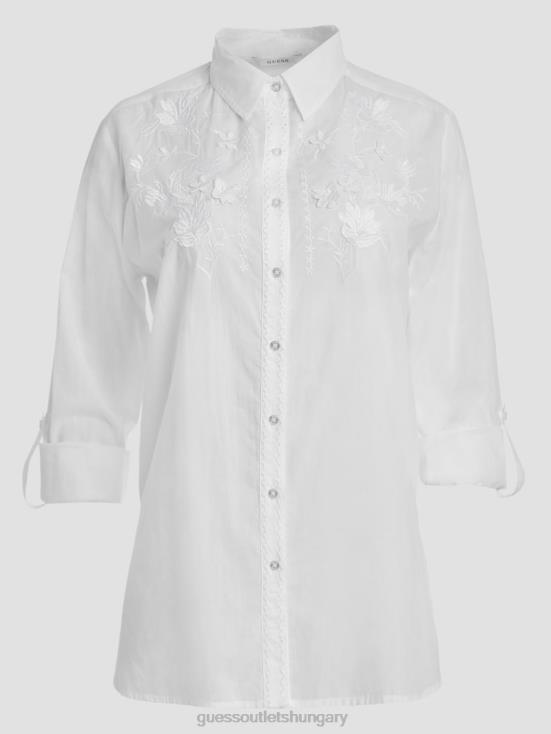 GUESS Pure White 8ZX4F1165 Nadia Embroidered Cotton Shirt