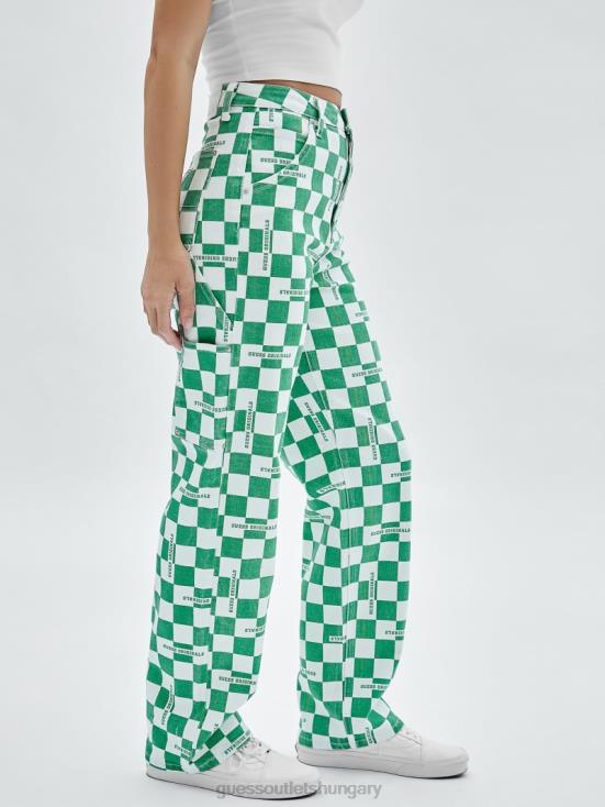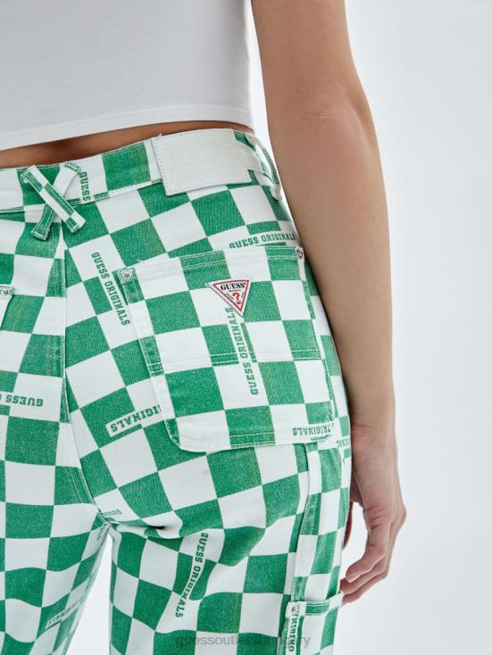 GUESS Matcha Green Multi 8ZX4F197 Originals Checkered Carpenter Jeans