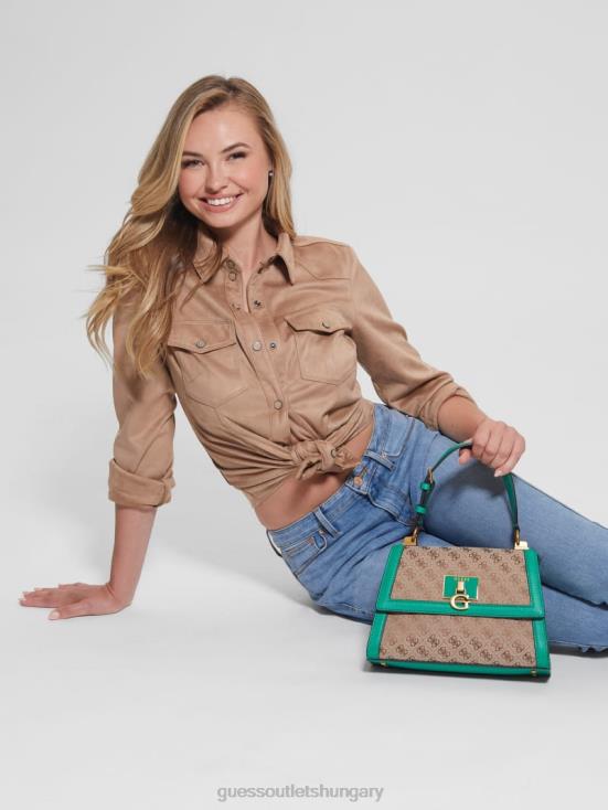 GUESS Green 8ZX4F2970 Stephi Jacquard Logo Top Handle Bag