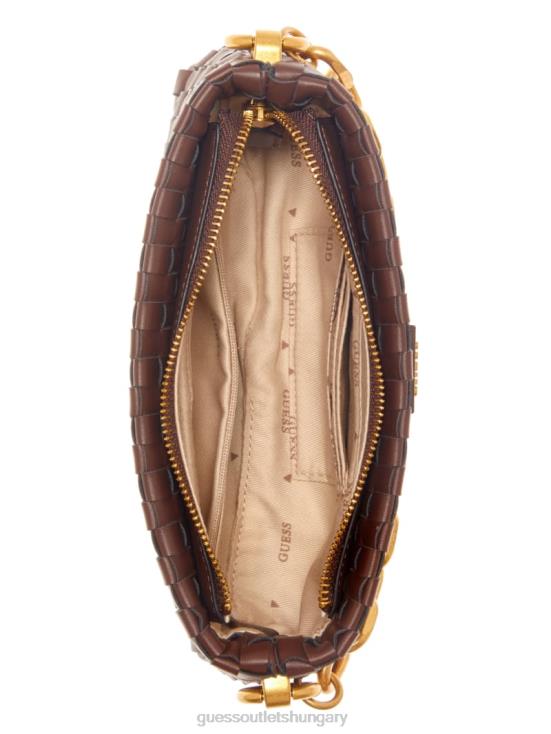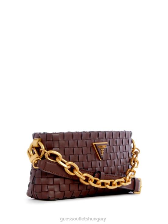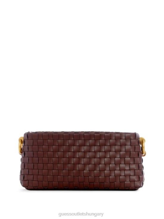 GUESS Mahogany 8ZX4F2858 Lisbet Woven Mini Zip-Top Crossbody