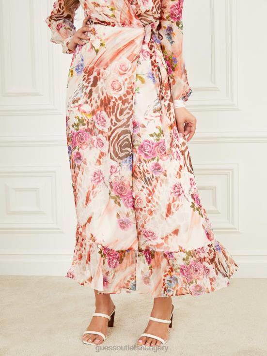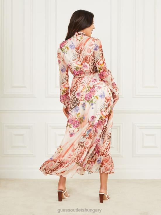 GUESS Rose Shadow Print 8ZX4F745 Rose Silk Wrap Dress