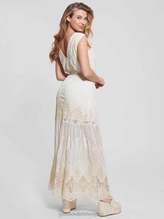 GUESS Cream White 8ZX4F572 Pam Embroidered Long Dress