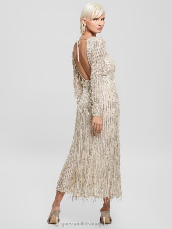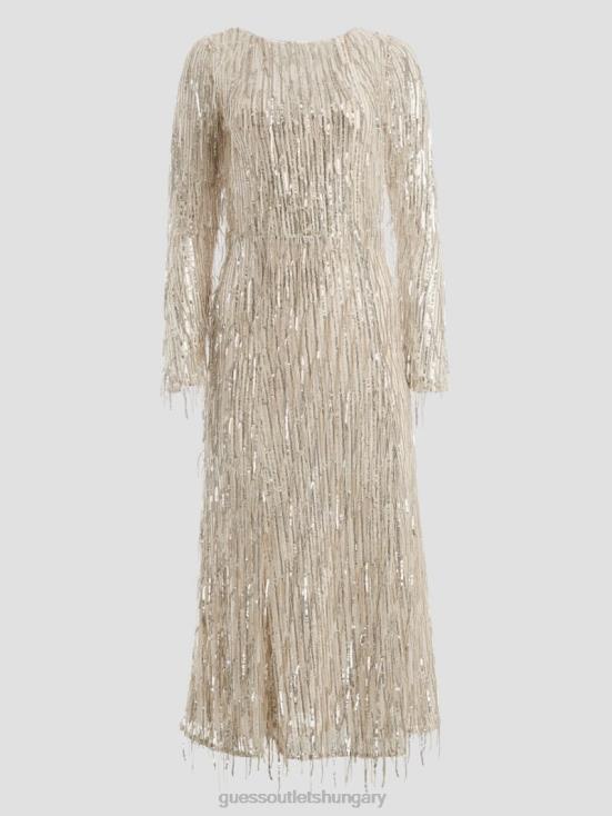 GUESS Off White Multi 8ZX4F737 Elodie Sequin Fringe Dress