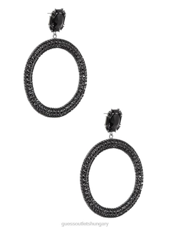 Make a statement in these glitzy black rhinestone earrings featuring an oversized crystal stud base and dropped hoop.
