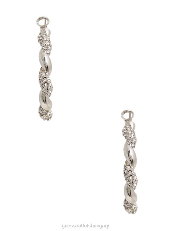 GUESS Silver 8ZX4F3835 Rhinestone Twist Hoop Earrings