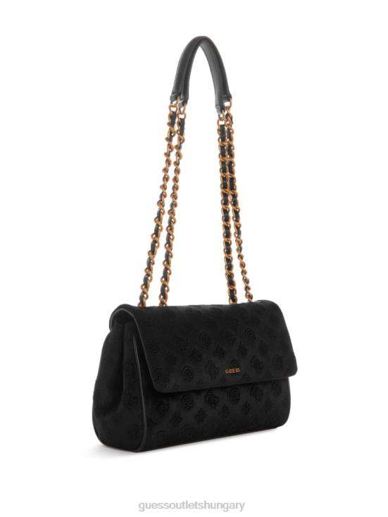 GUESS Black Floral Print 8ZX4F2792 Inia Velvet Convertible Crossbody