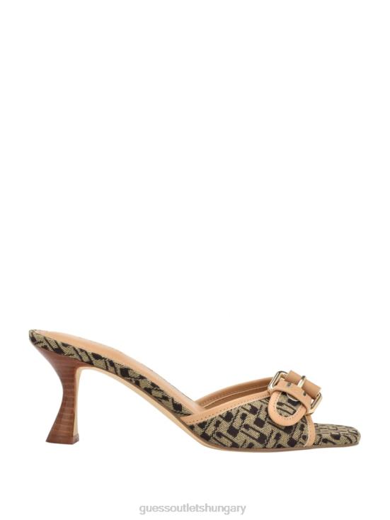 GUESS Medium Brown 8ZX4F3381 Dista Buckled Logo Kitten Heels