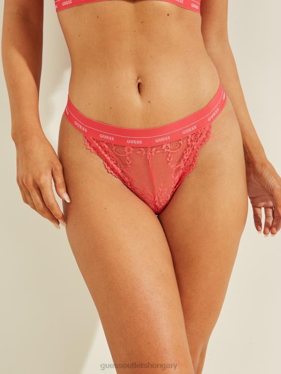 GUESS Pink Rouge 8ZX4F2742 Aria Lace Logo Brazilian Panty