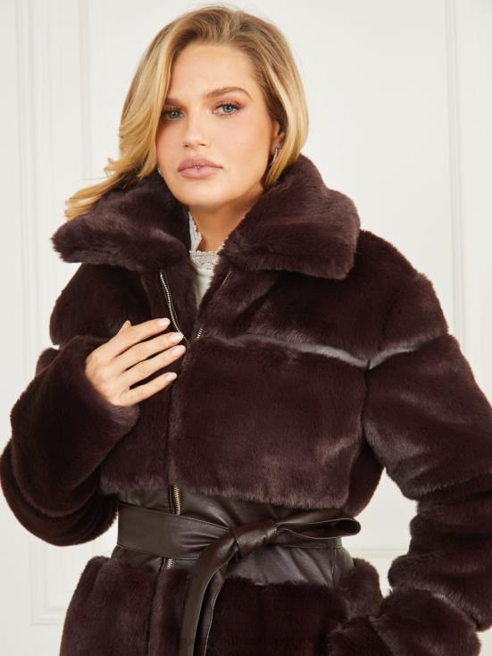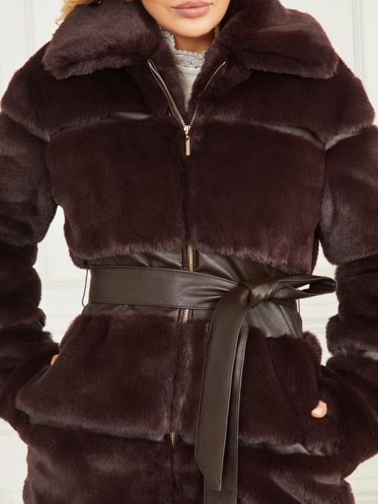GUESS Dark Roast Multi 8ZX4F1856 Rosetta Faux-Fur Coat