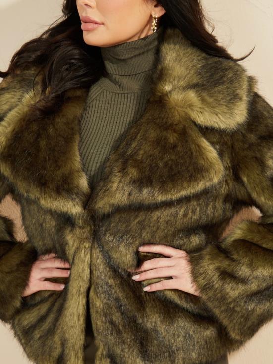 GUESS Lancer Green Multi 8ZX4F1928 Gwenda Faux-Fur Jacket