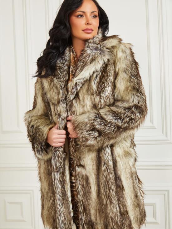 GUESS Beige And Brown Mixed 8ZX4F1794 Lucrezia Coat