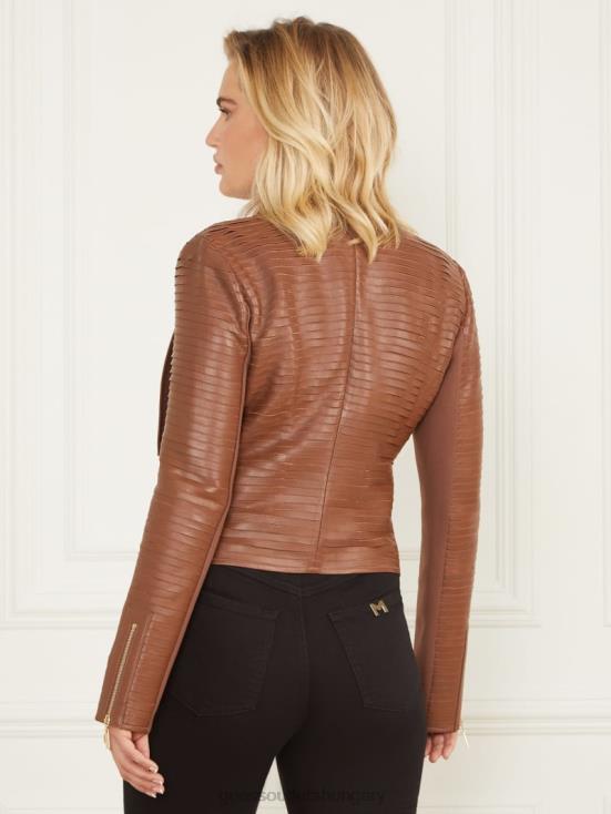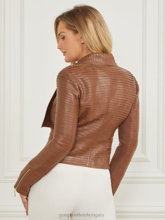 GUESS Brown Beauty 8ZX4F1825 Shayna Drape Leather Jacket