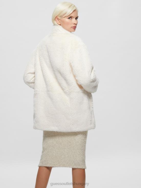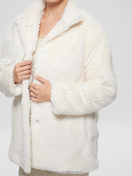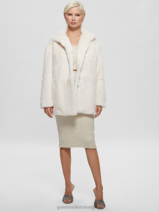 GUESS Cream White 8ZX4F1885 Michelina Faux-Fur Coat