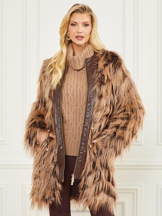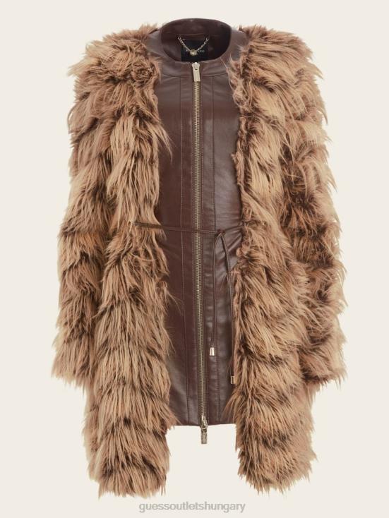 GUESS Dark Bourbon With Classic 8ZX4F1977 Dinah Shaggy Coat