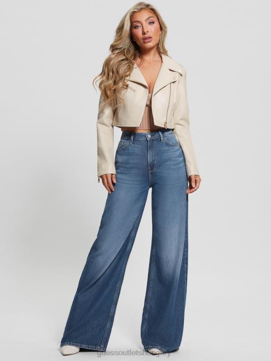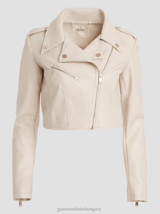 GUESS Pearl Oyster 8ZX4F1733 Rochelle Faux-Leather Moto Jacket