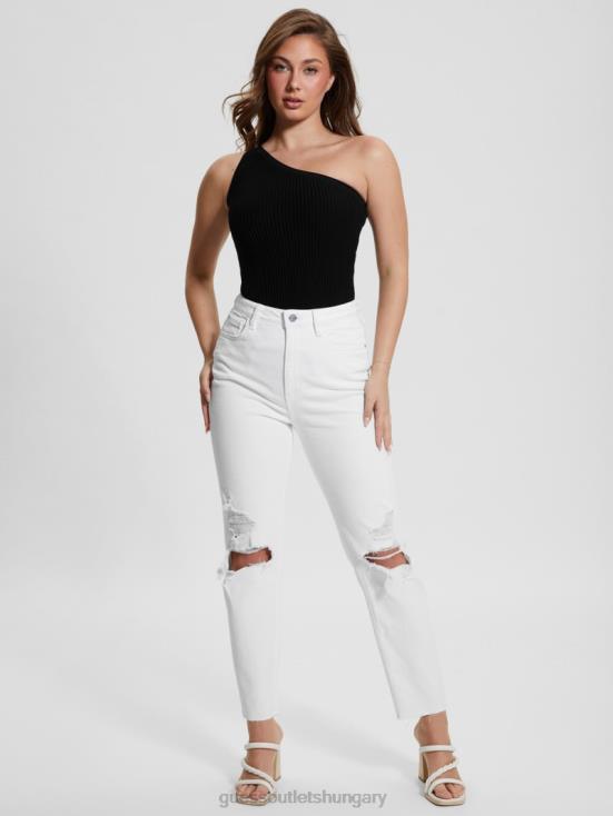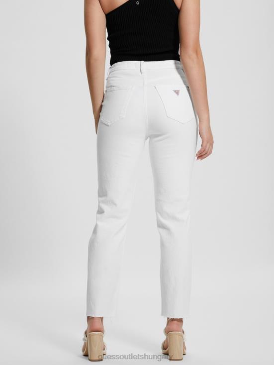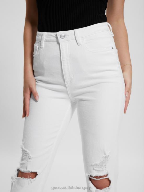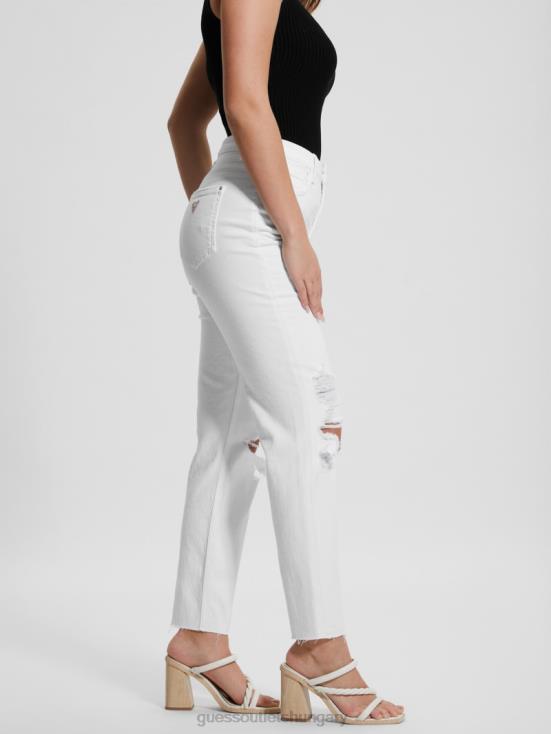 GUESS Pure White Multi 8ZX4F70 Destroyed Mom Jeans