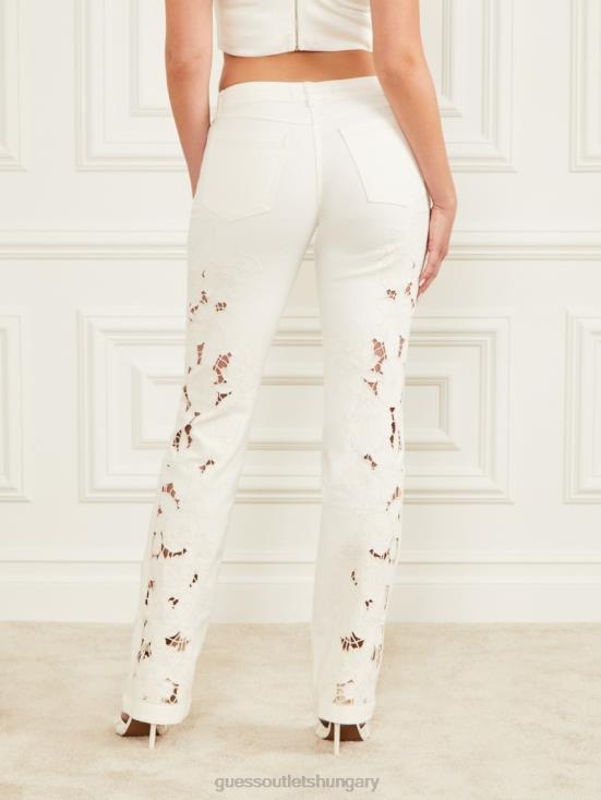 GUESS White 8ZX4F200 Floral Cutout Denim Pant