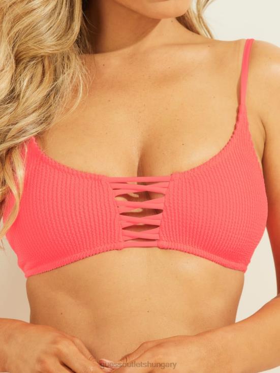 GUESS Amy Pink 8ZX4F2614 Textured Lace-Up Bikini Bralette