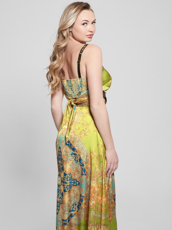 GUESS Baroque Lime 8ZX4F1089 Bassma Satin Crop Scarf Top