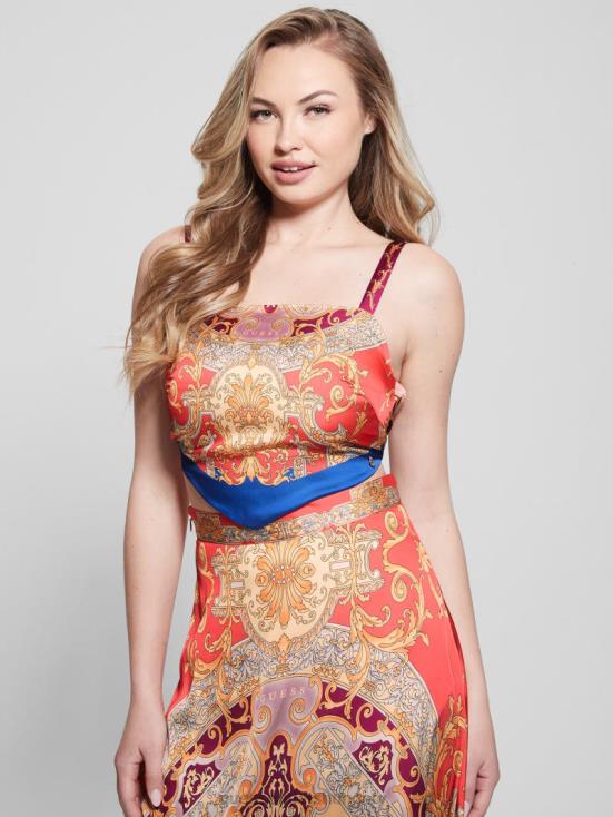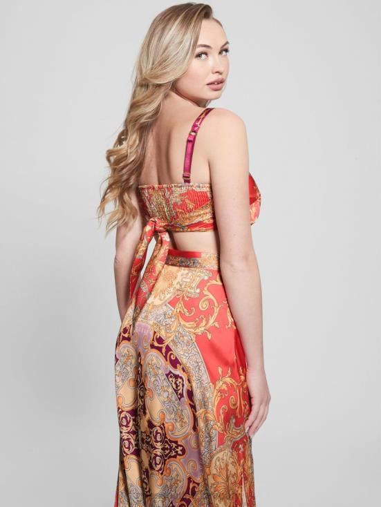 GUESS Baroque Pink 8ZX4F1001 Bassma Satin Crop Scarf Top