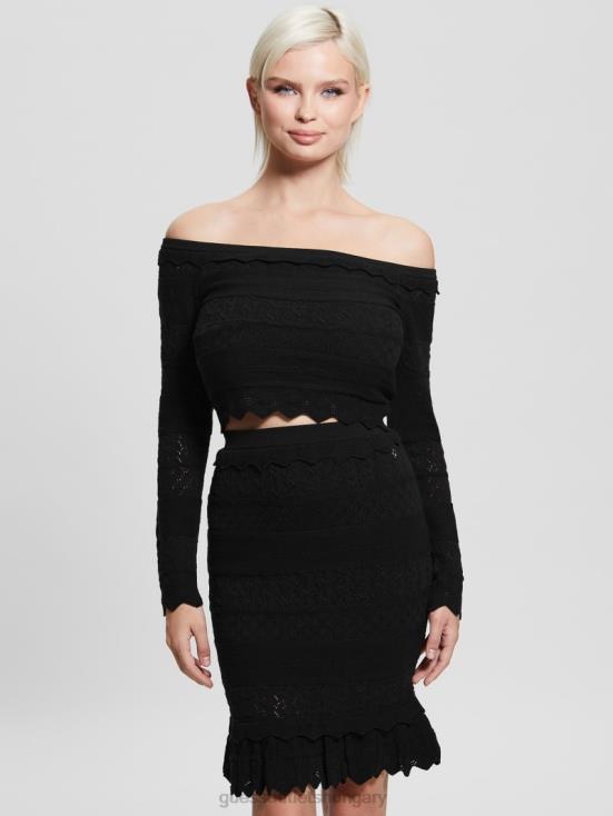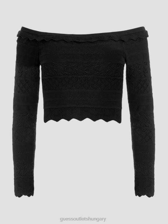 GUESS Black 8ZX4F1508 Eco Pointelle Deeta Sweater Top