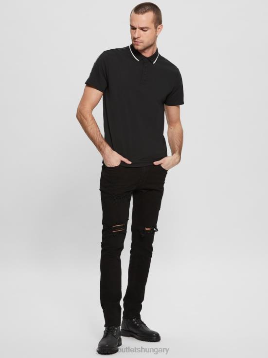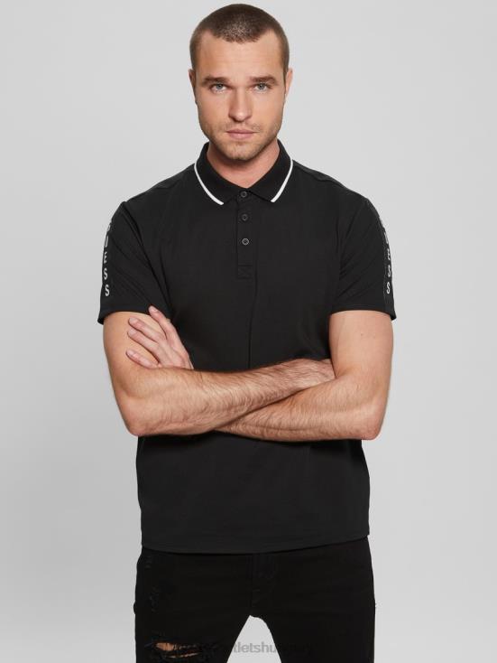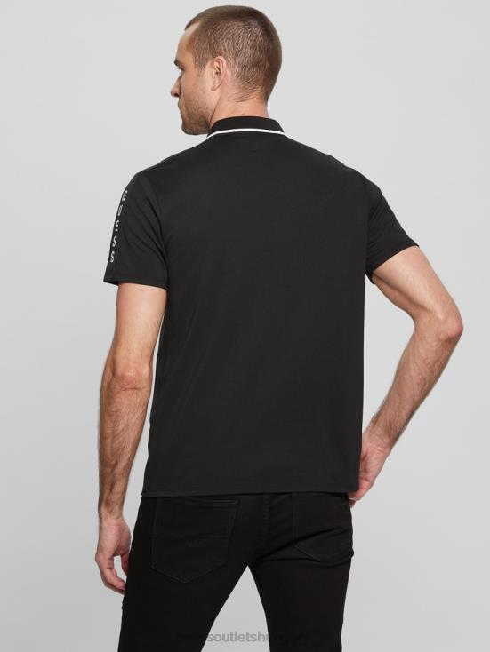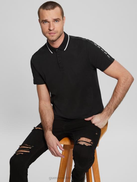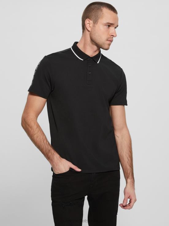 GUESS Black 8ZX4F4043 Paul Pique Tape Polo Shirt
