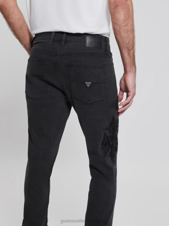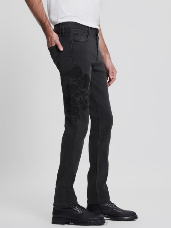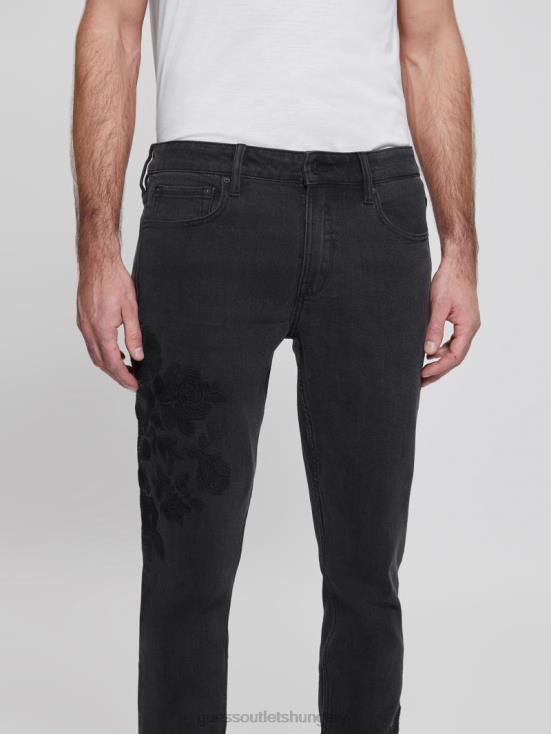 GUESS Jet Black Floral 8ZX4F4173 Embroidered Tapered Jeans