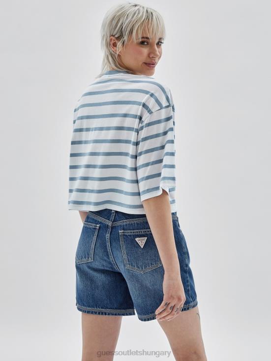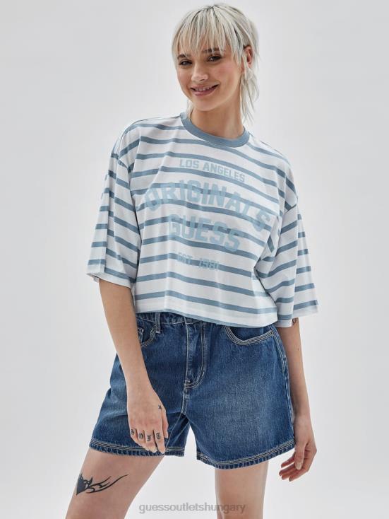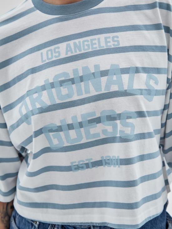 GUESS Aerial Blue Multi 8ZX4F1280 Originals Striped Cropped Shirt