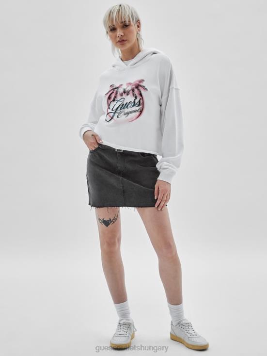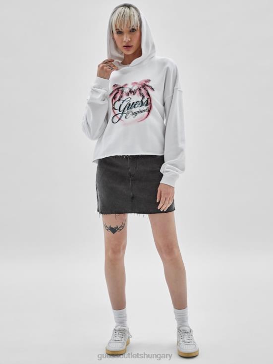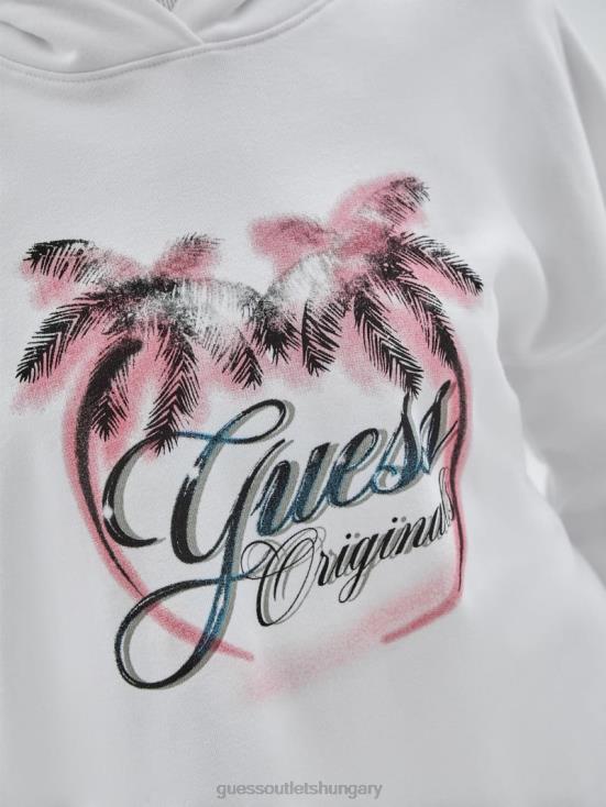 GUESS Pure White 8ZX4F1357 Originals Eco Palm Hoodie