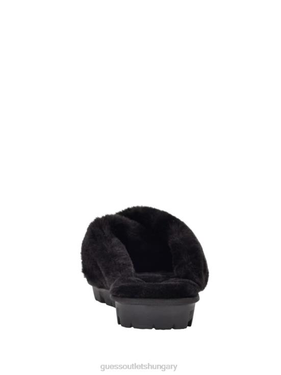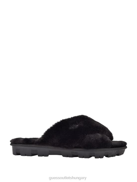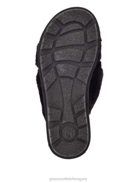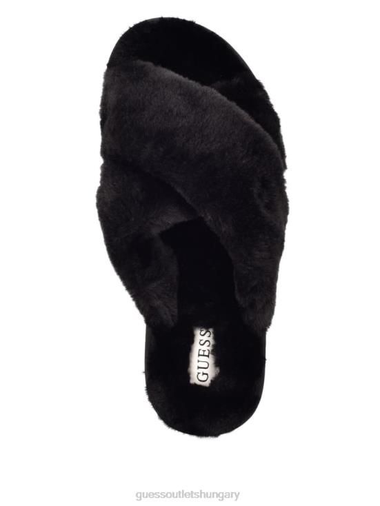 GUESS Black Fabric 8ZX4F3488 Crisscross Fur Slipper
