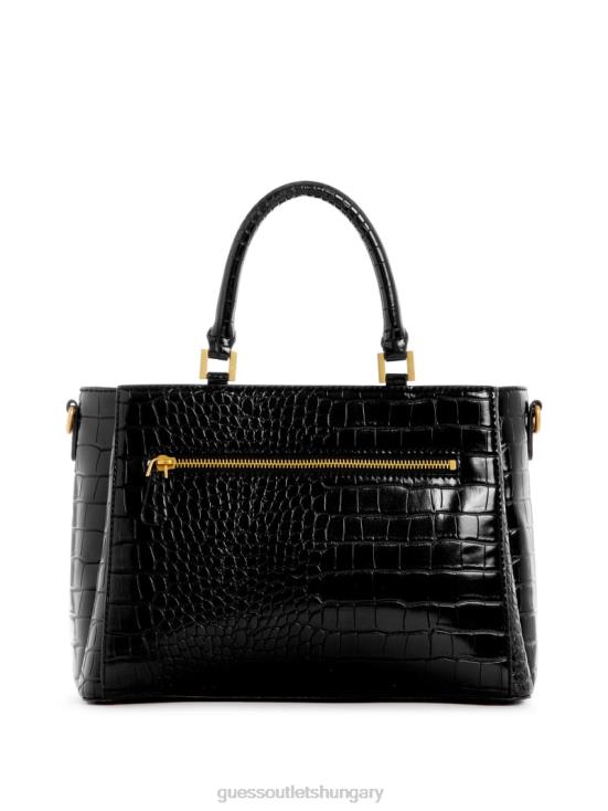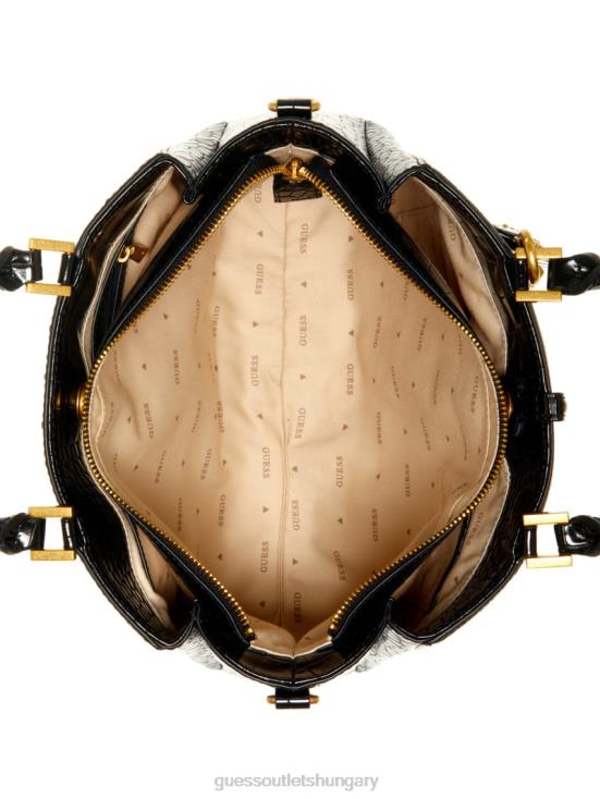 GUESS Black Floral Print 8ZX4F2826 James Croc Girlfriend Satchel