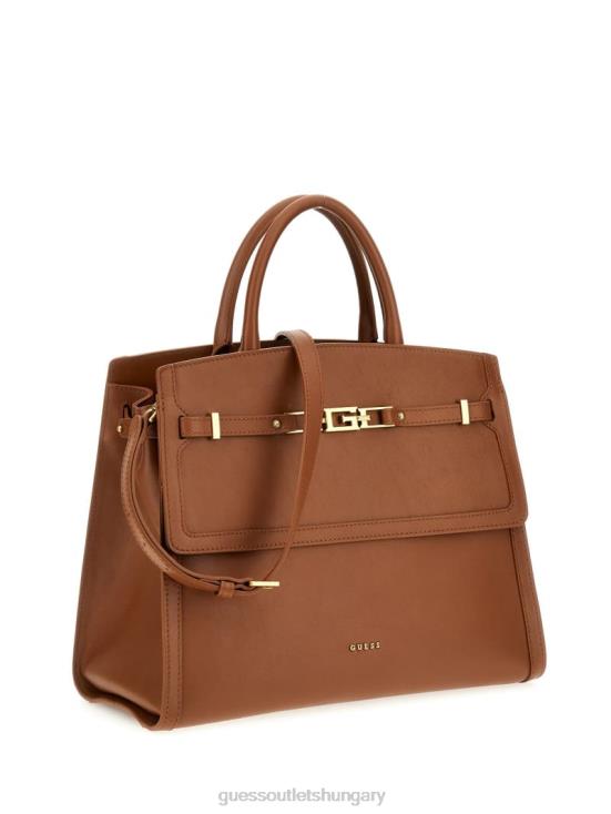 GUESS Cognac 8ZX4F2828 Cristina Medium Leather Satchel