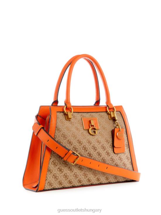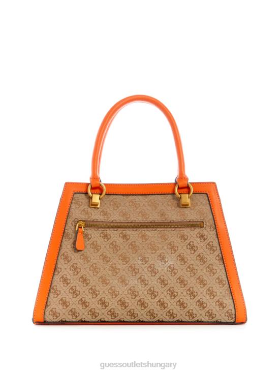 GUESS Latte Logo/Orange 8ZX4F2980 Stephi Jacquard Logo Girlfriend Satchel