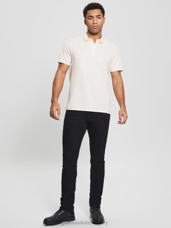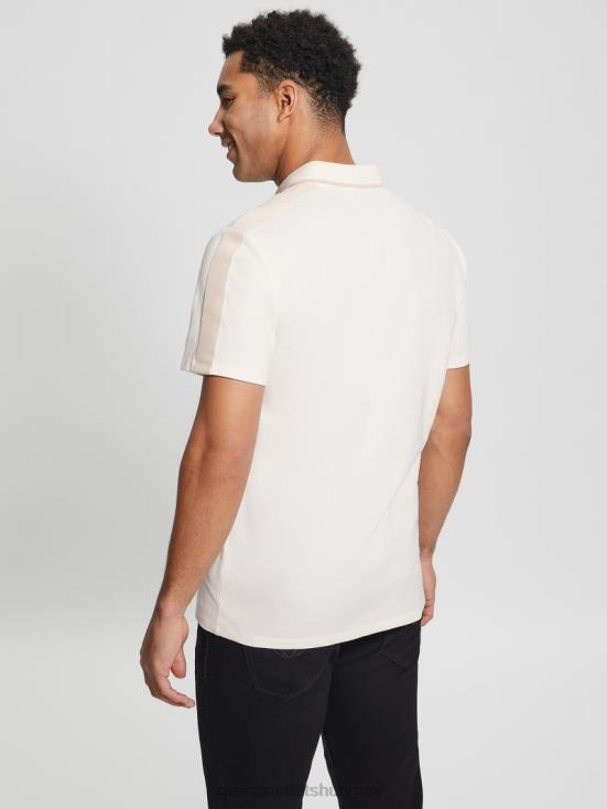 GUESS Vanilla Cream 8ZX4F4180 Paul Pique Tape Polo Shirt