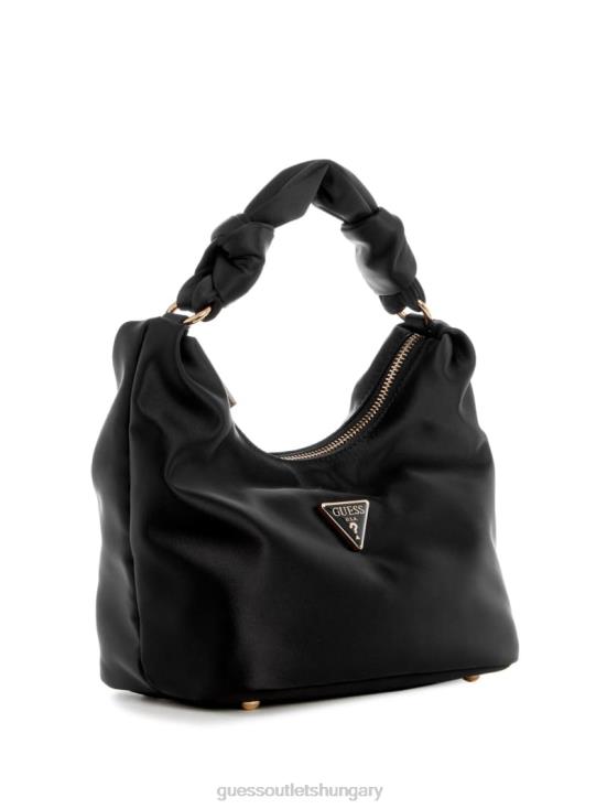 GUESS Black Floral Print 8ZX4F3014 Velina Satin Hobo Bag
