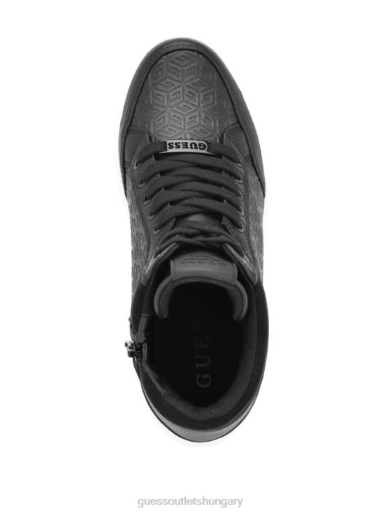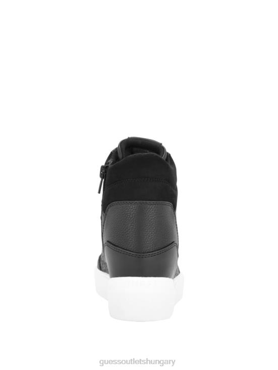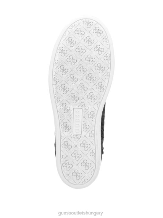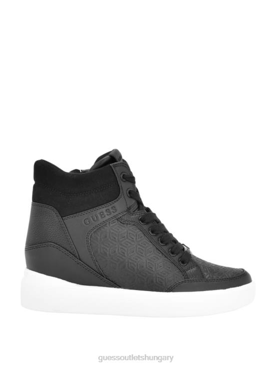 GUESS Black Leather 8ZX4F3341 Blairin Rhinestone Logo Wedge Sneakers