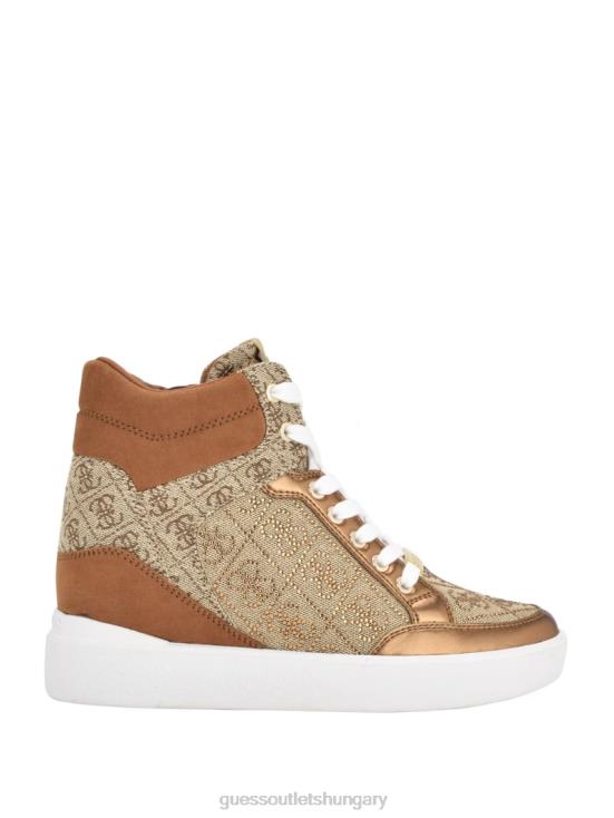 GUESS Medium Brown 8ZX4F3342 Blairin Rhinestone Logo Wedge Sneakers