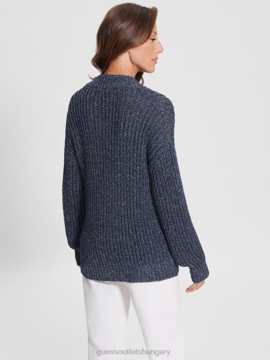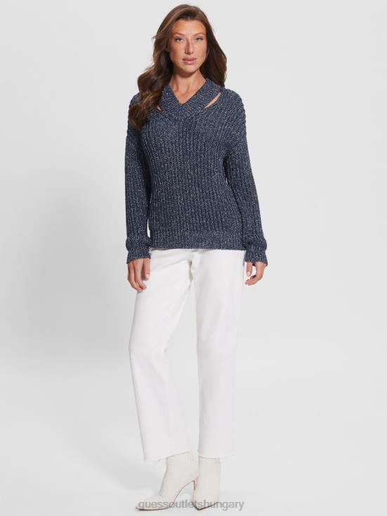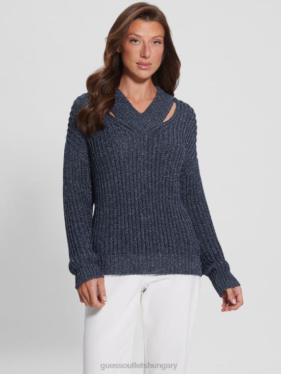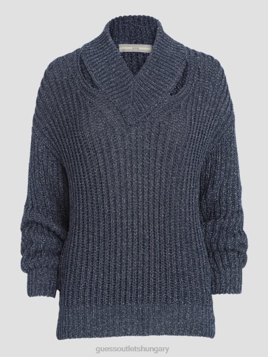 GUESS Blackened Blue Lurex 8ZX4F1597 Lise Cutout Sweater