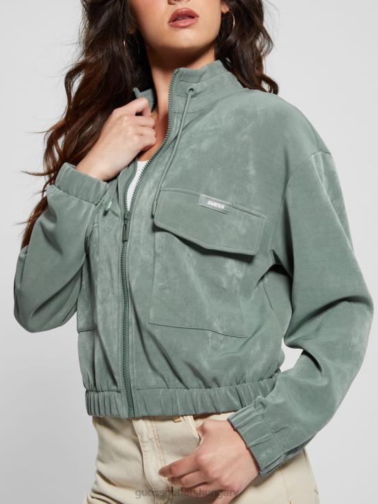 GUESS Veridian Teal 8ZX4F2462 Euphemia Cargo Zip-Up Sweater