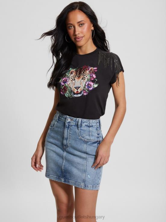 GUESS Acid Jet Black 8ZX4F995 Leopard Fringe Tee