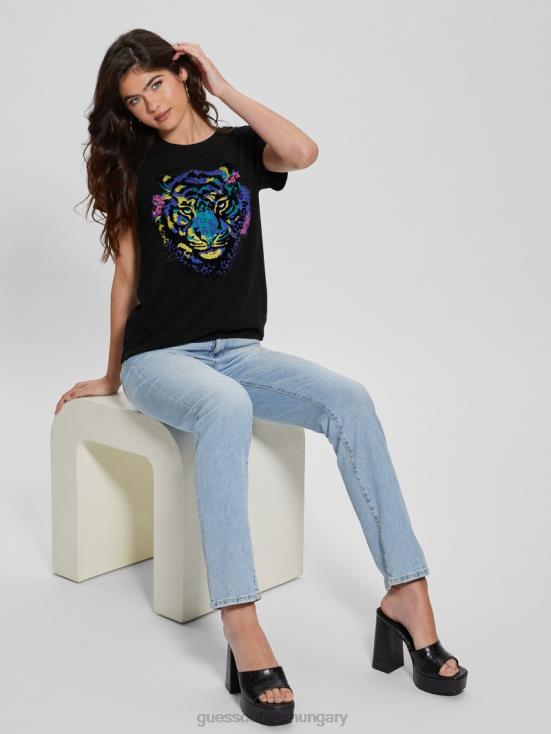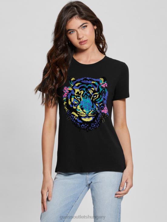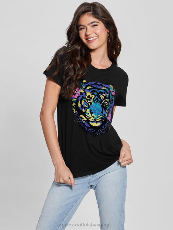 GUESS Black 8ZX4F1016 Tiger Rhinestone Tee