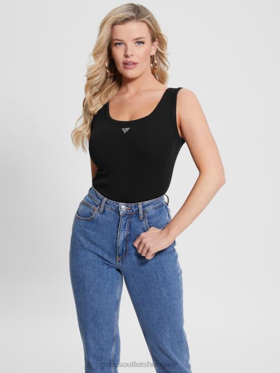 GUESS Black 8ZX4F1053 Eco Triangle Bling Ribbed Tank