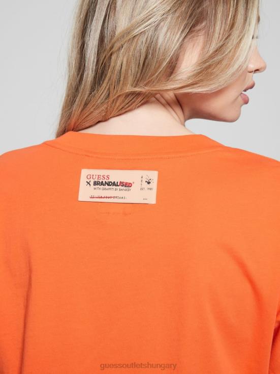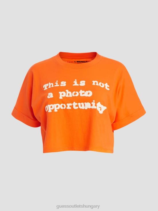 GUESS Orange Slushie 8ZX4F1073 Slogan Crop Tee