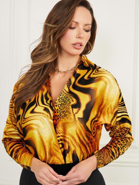 GUESS Golden Sunset Print 8ZX4F1252 Long-Sleeve Bodysuit