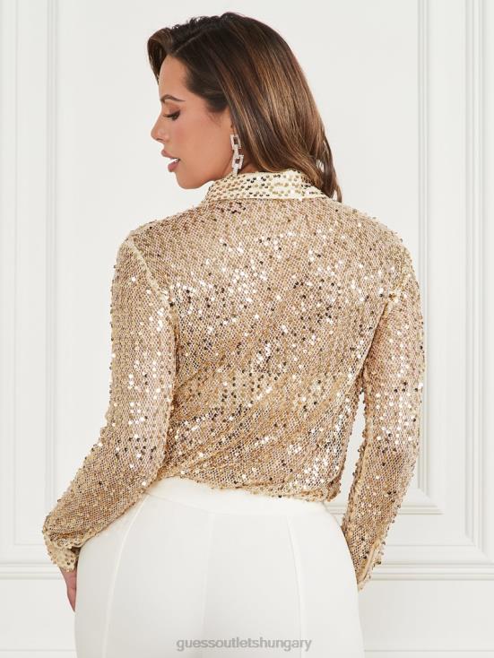 GUESS Pale Pearl Multi 8ZX4F942 Sequin Dreams Blouse