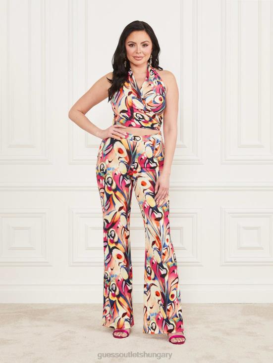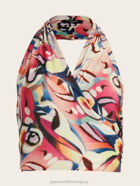 GUESS Wonderland Print 8ZX4F1166 Anise Crop Halter Top